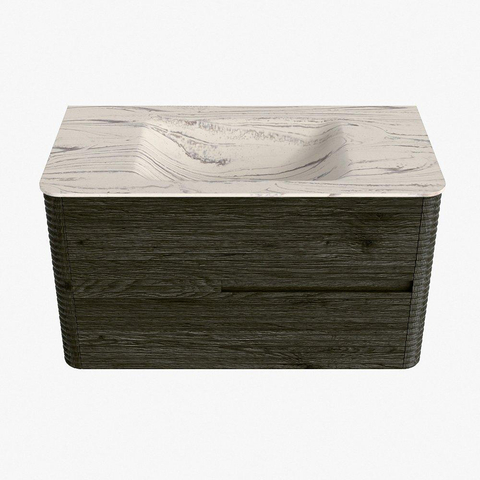 Mondiaz CIRO-DLUX Badkamermeubelset - 90x45x50cm - Solid surface wastafel Nata - 1 wasbak Midden - 1 kraangat - 2 lades - Shadow