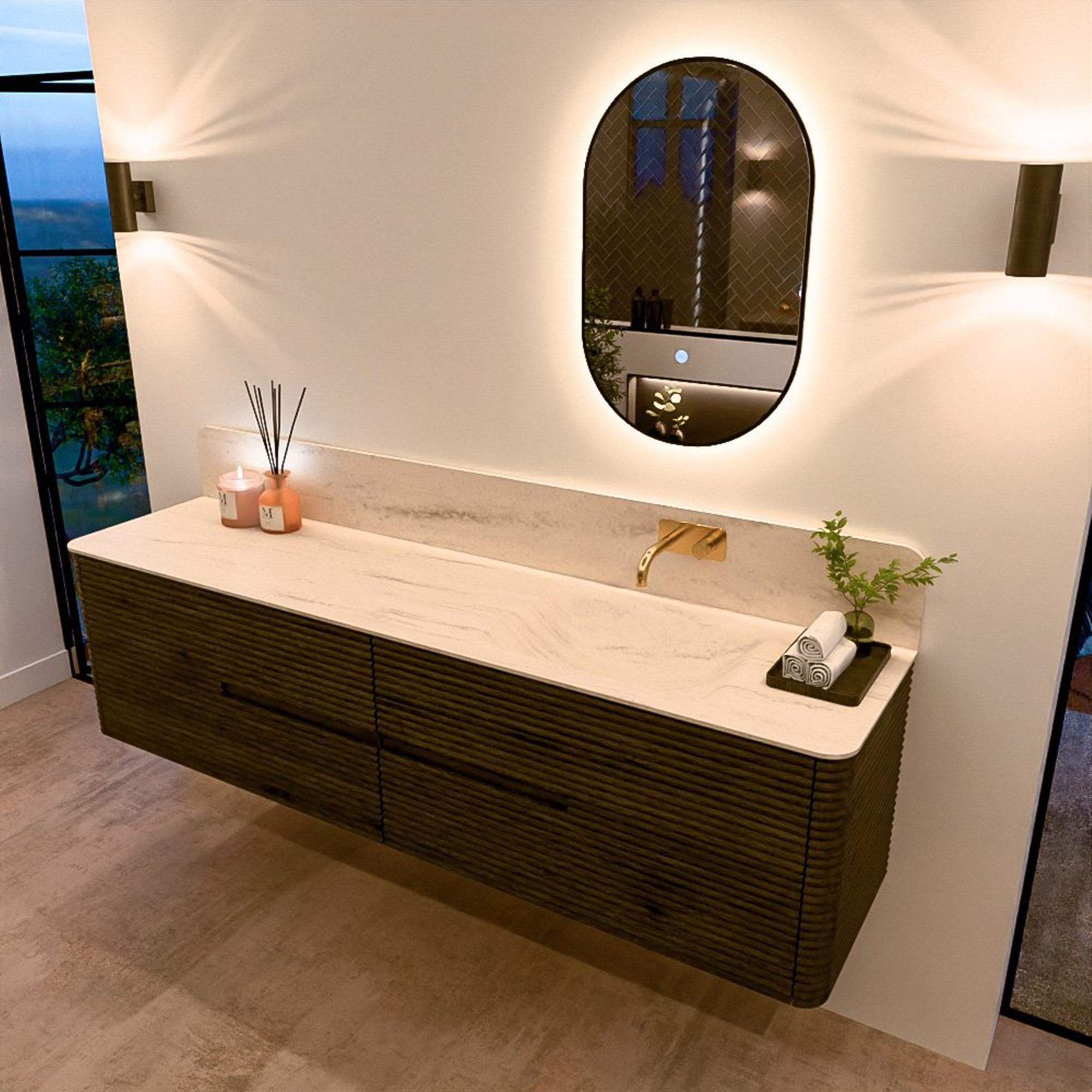 Het CIRO-DLUX badkamermeubel is ontwikkeld voor wie kiest voor modern design, natuurlijke materialen en hoogwaardige functionaliteit. Met maatvoeringen van 70 cm tot 190 cm past de CIRO-serie moeiteloos in zowel compacte badkamers als royale designruimtes. Elk meubel is een uitgebalanceerde combinatie van esthetiek, ambacht en duurzame kwaliteit.