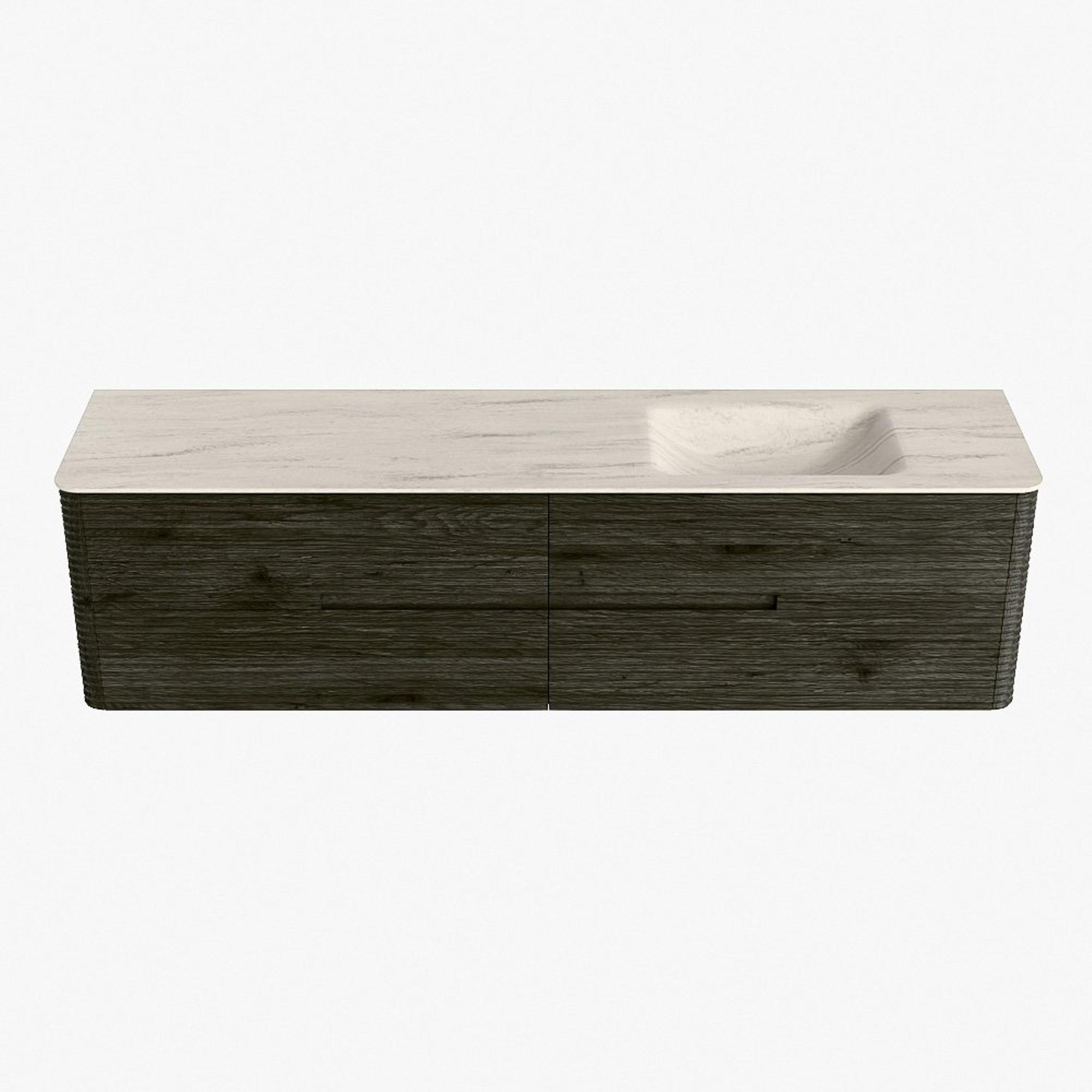 Mondiaz CIRO-DLUX Badkamermeubelset - 190x45x50cm - Solid surface wastafel Meli - 1 wasbak Rechts - zonder kraangaten - 4 lades - Shadow