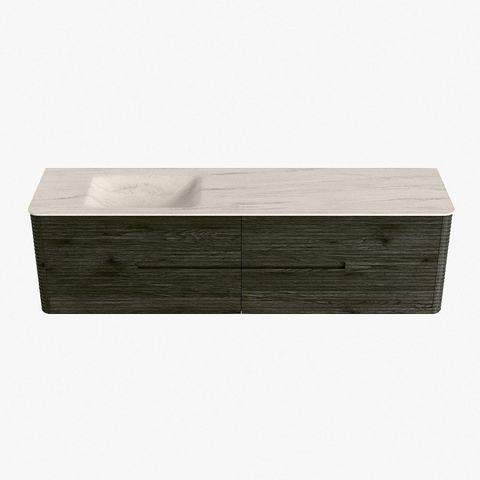 Mondiaz CIRO-DLUX Badkamermeubelset - 180x45x50cm - Solid surface wastafel Meli - 1 wasbak Links - zonder kraangaten - 4 lades - Shadow