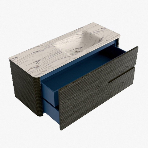 Functioneel gemak is een essentieel onderdeel van de CIRO-serie. Het meubel beschikt over een royale lade met extra binnen lade, ideaal voor het overzichtelijk opbergen van alle dagelijkse badkamerartikelen. Dankzij de geïntegreerde greep en het soft close-mechanisme blijft het front rustig, strak en elegant.