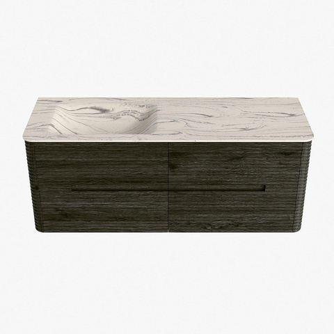 Mondiaz CIRO-DLUX Badkamermeubelset - 130x45x50cm - Solid surface wastafel Nata - 1 wasbak Links - 1 kraangat - 4 lades - Shadow