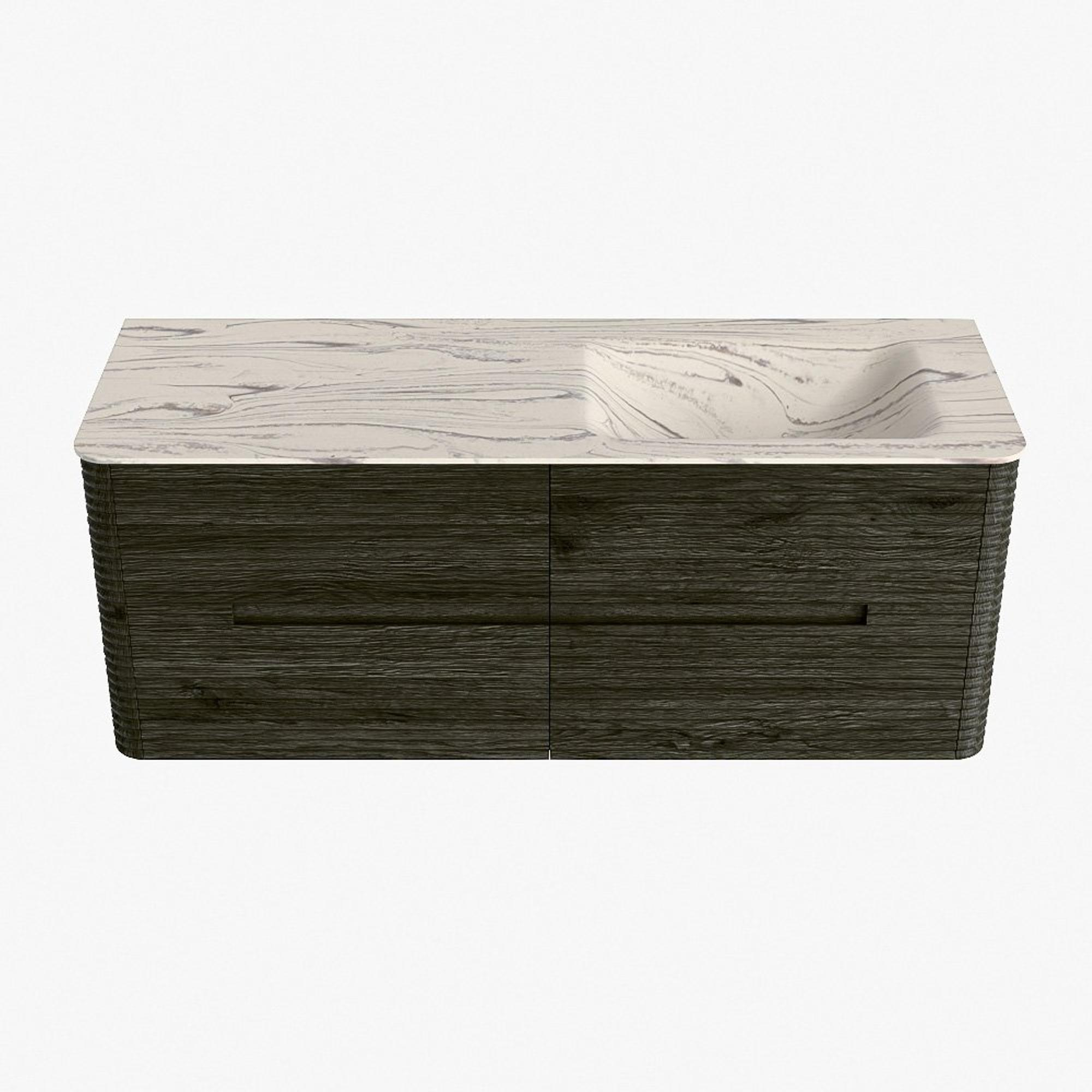 Mondiaz CIRO-DLUX Badkamermeubelset - 130x45x50cm - Solid surface wastafel Nata - 1 wasbak Rechts - zonder kraangaten - 4 lades - Shadow