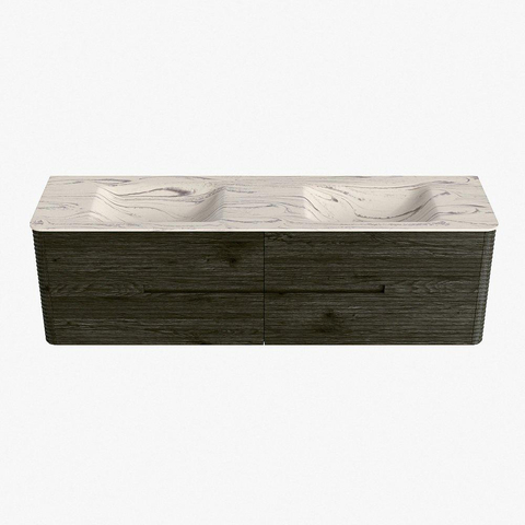 Mondiaz CIRO-DLUX Badkamermeubelset - 170x45x50cm - Solid surface wastafel Nata - 2 wasbak Dubbel - zonder kraangaten - 4 lades - Shadow