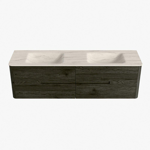 Mondiaz CIRO-DLUX Badkamermeubelset - 170x45x50cm - Solid surface wastafel Meli - 2 wasbak Dubbel - 2 kraangaten - 4 lades - Shadow