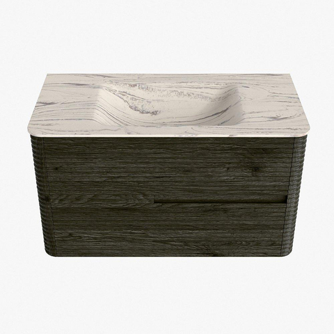 Mondiaz CIRO-DLUX Badkamermeubelset - 90x45x50cm - Solid surface wastafel Nata - 1 wasbak Midden - zonder kraangaten - 2 lades - Shadow