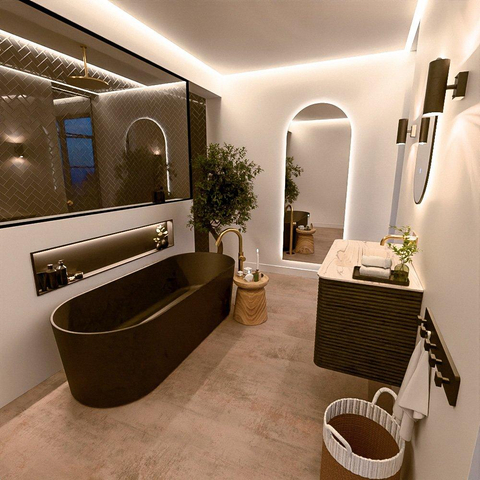 De wastafels van de CIRO-lijn worden vervaardigd uit hoogwaardig Solid Surface, een materiaal dat bekendstaat om zijn strakke uitstraling, hygiënische eigenschappen en uitstekende duurzaamheid. De wastafels zijn beschikbaar in 11 marmer- en travertin tinten, waarmee je het luxueuze karakter van natuursteen combineert met de voordelen van Solid Surface. De organische vorm van de kom versterkt het serene, sculpturale karakter van het ontwerp.