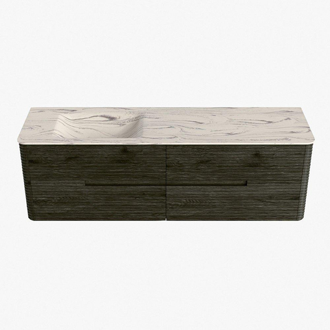 Mondiaz CIRO-DLUX Badkamermeubelset - 160x45x50cm - Solid surface wastafel Nata - 1 wasbak Links - zonder kraangaten - 4 lades - Shadow