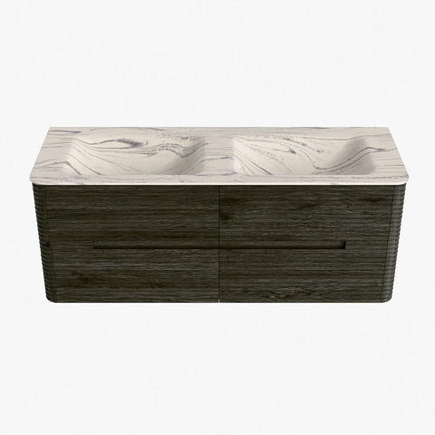Mondiaz CIRO-DLUX Badkamermeubelset - 130x45x50cm - Solid surface wastafel Nata - 2 wasbak Dubbel - zonder kraangaten - 4 lades - Shadow