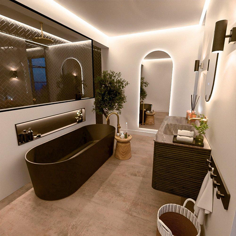 De wastafels van de CIRO-lijn worden vervaardigd uit hoogwaardig Solid Surface, een materiaal dat bekendstaat om zijn strakke uitstraling, hygiënische eigenschappen en uitstekende duurzaamheid. De wastafels zijn beschikbaar in 11 marmer- en travertin tinten, waarmee je het luxueuze karakter van natuursteen combineert met de voordelen van Solid Surface. De organische vorm van de kom versterkt het serene, sculpturale karakter van het ontwerp.
