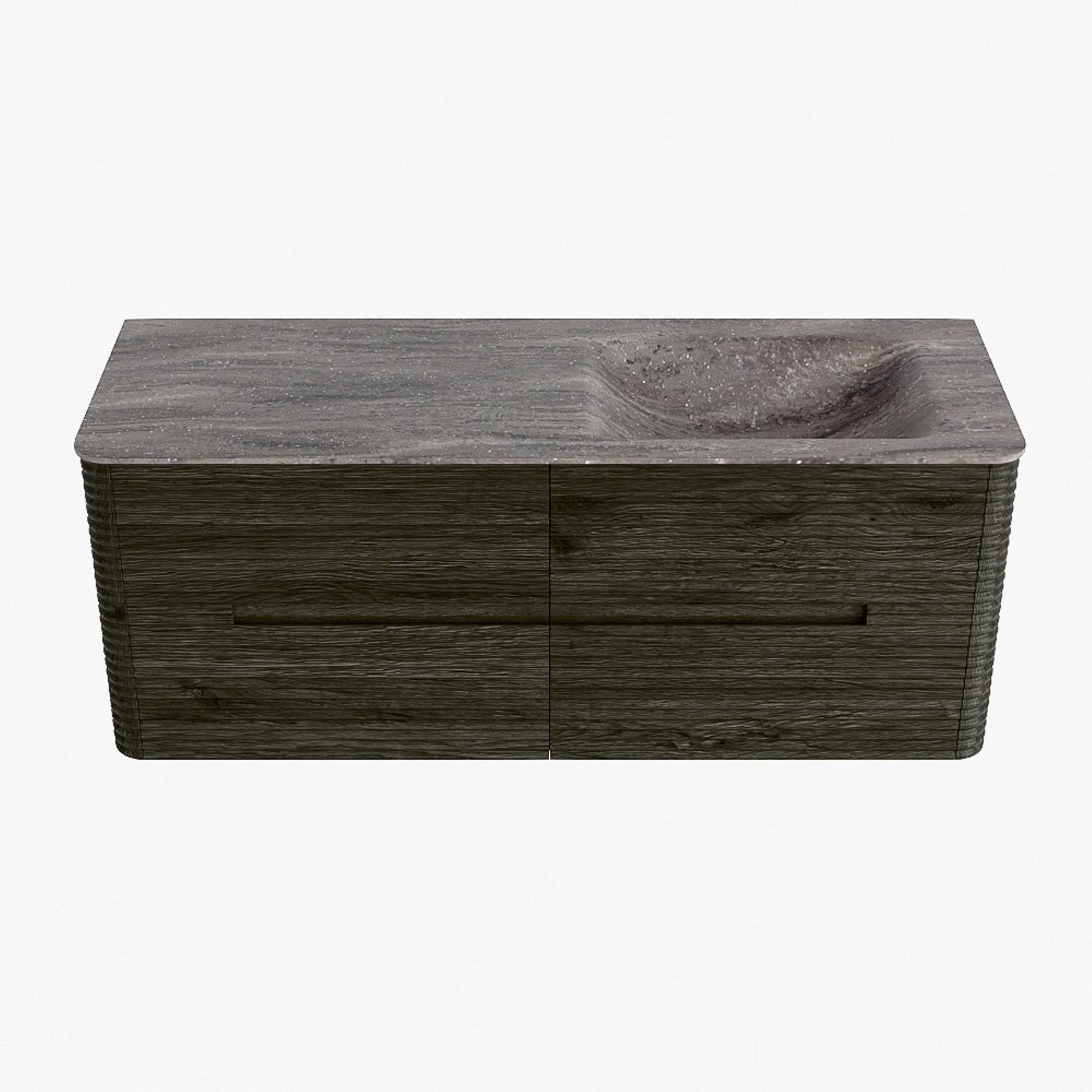 Mondiaz CIRO-DLUX Badkamermeubelset - 130x45x50cm - Solid surface wastafel Oza - 1 wasbak Rechts - 1 kraangat - 4 lades - Shadow