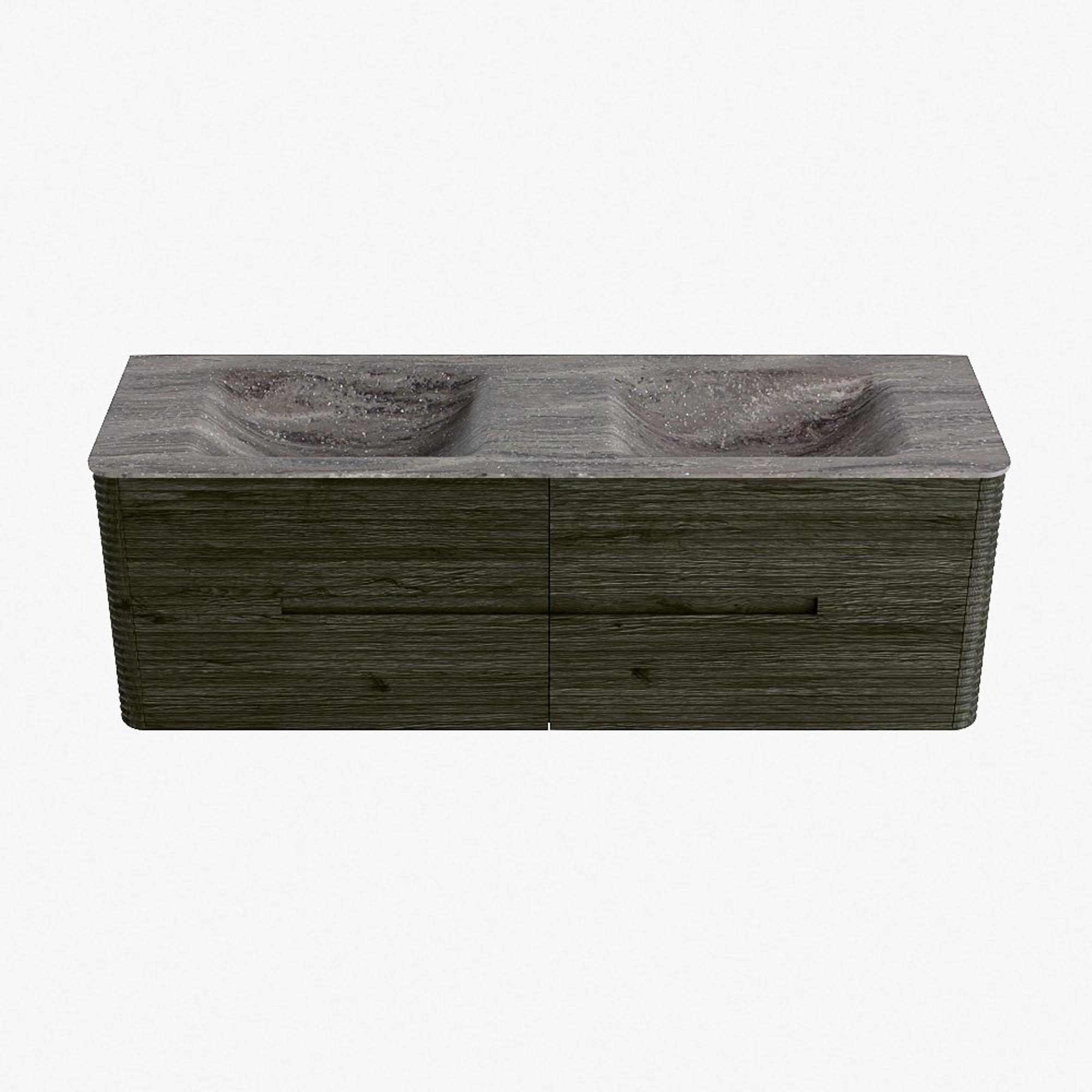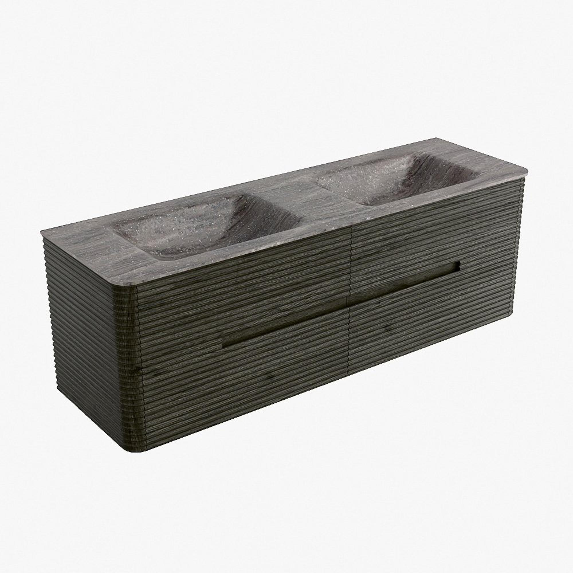Mondiaz CIRO-DLUX Badkamermeubelset - 150x45x50cm - Solid surface wastafel Oza - 2 wasbak Dubbel - 2 kraangaten - 4 lades - Shadow