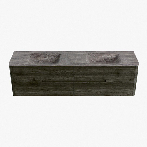 Mondiaz CIRO-DLUX Badkamermeubelset - 180x45x50cm - Solid surface wastafel Oza - 2 wasbak Dubbel - 2 kraangaten - 4 lades - Shadow