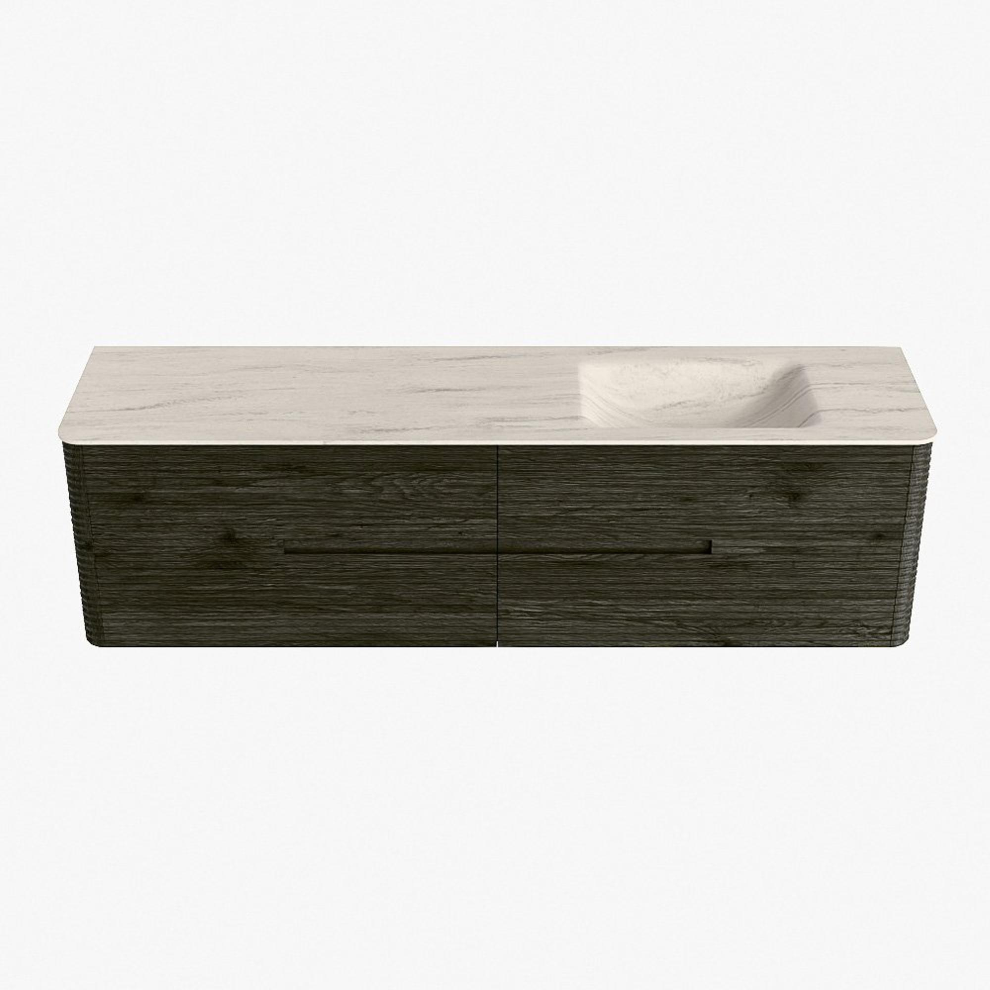 Mondiaz CIRO-DLUX Badkamermeubelset - 180x45x50cm - Solid surface wastafel Meli - 1 wasbak Rechts - 1 kraangat - 4 lades - Shadow