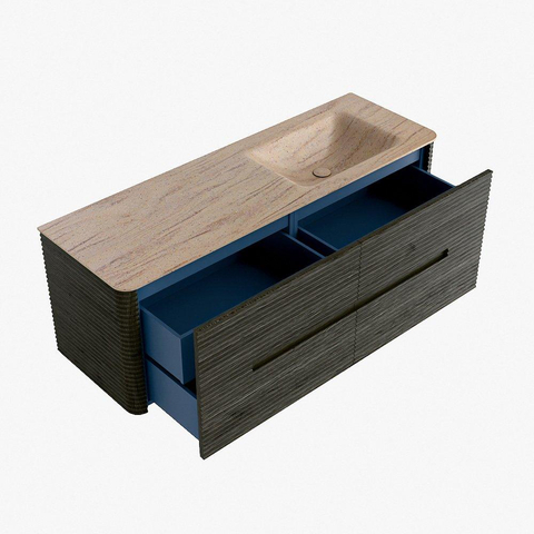 Mondiaz CIRO-DLUX Badkamermeubelset - 140x45x50cm - Solid surface wastafel Saba - 1 wasbak Rechts - 1 kraangat - 4 lades - Shadow
