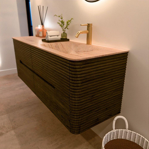 De wastafels van de CIRO-lijn worden vervaardigd uit hoogwaardig Solid Surface, een materiaal dat bekendstaat om zijn strakke uitstraling, hygiënische eigenschappen en uitstekende duurzaamheid. De wastafels zijn beschikbaar in 11 marmer- en travertin tinten, waarmee je het luxueuze karakter van natuursteen combineert met de voordelen van Solid Surface. De organische vorm van de kom versterkt het serene, sculpturale karakter van het ontwerp.
