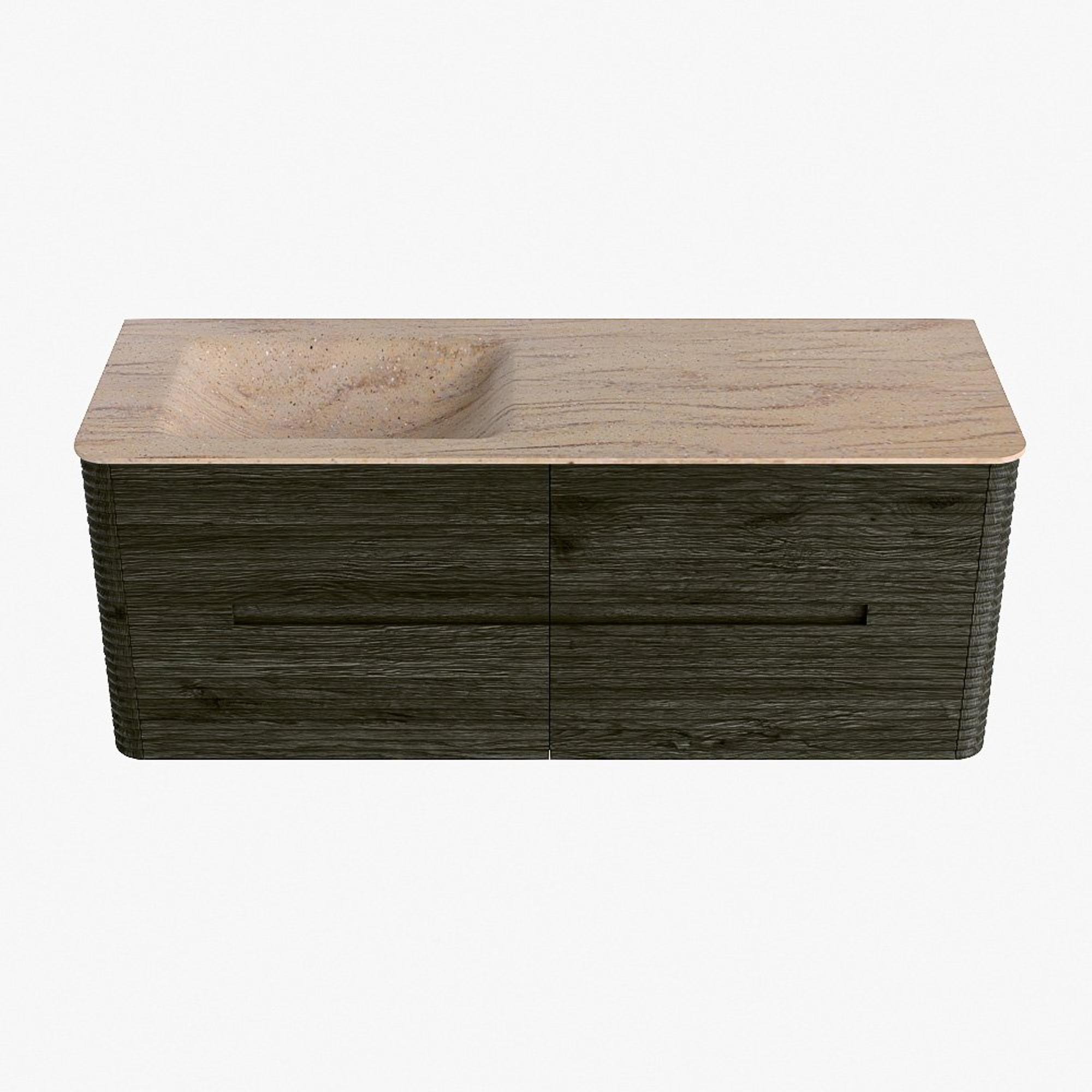 Mondiaz CIRO-DLUX Badkamermeubelset - 130x45x50cm - Solid surface wastafel Saba - 1 wasbak Links - 1 kraangat - 4 lades - Shadow
