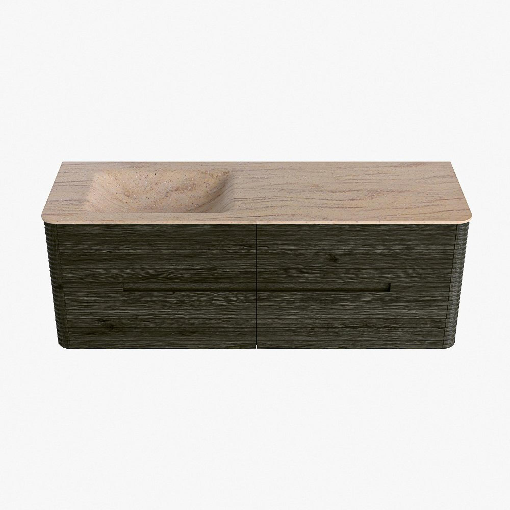 Mondiaz CIRO-DLUX Badkamermeubelset - 140x45x50cm - Solid surface wastafel Saba - 1 wasbak Links - zonder kraangaten - 4 lades - Shadow