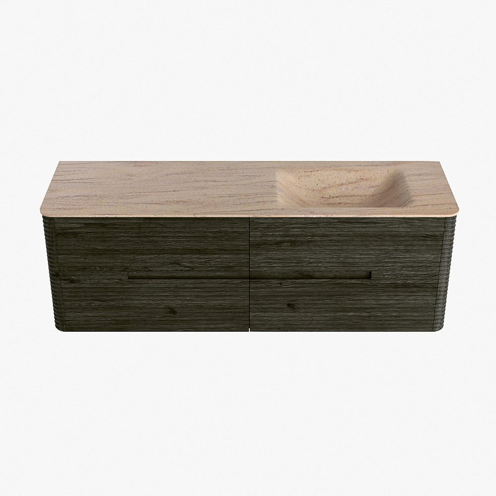 Mondiaz CIRO-DLUX Badkamermeubelset - 150x45x50cm - Solid surface wastafel Saba - 1 wasbak Rechts - zonder kraangaten - 4 lades - Shadow