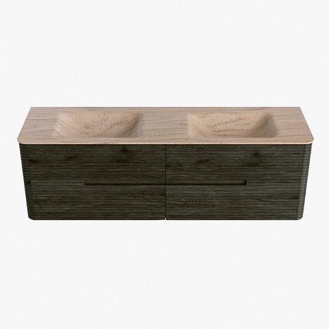 Mondiaz CIRO-DLUX Badkamermeubelset - 160x45x50cm - Solid surface wastafel Saba - 2 wasbak Dubbel - zonder kraangaten - 4 lades - Shadow