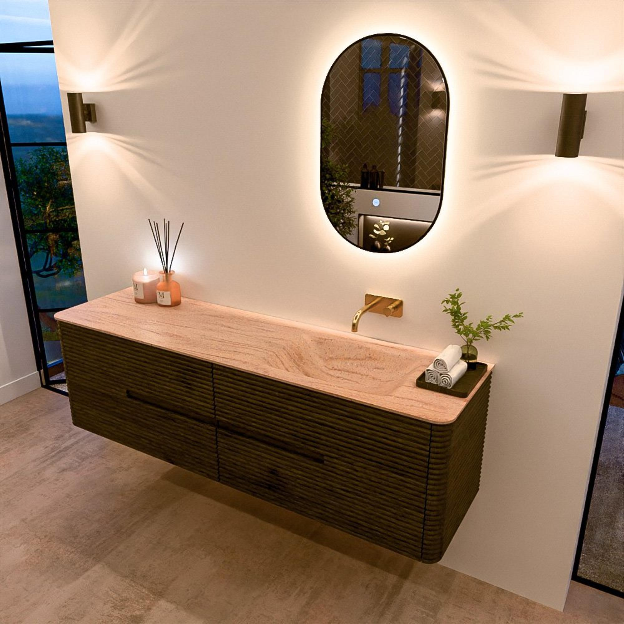 De wastafels van de CIRO-lijn worden vervaardigd uit hoogwaardig Solid Surface, een materiaal dat bekendstaat om zijn strakke uitstraling, hygiënische eigenschappen en uitstekende duurzaamheid. De wastafels zijn beschikbaar in 11 marmer- en travertin tinten, waarmee je het luxueuze karakter van natuursteen combineert met de voordelen van Solid Surface. De organische vorm van de kom versterkt het serene, sculpturale karakter van het ontwerp.