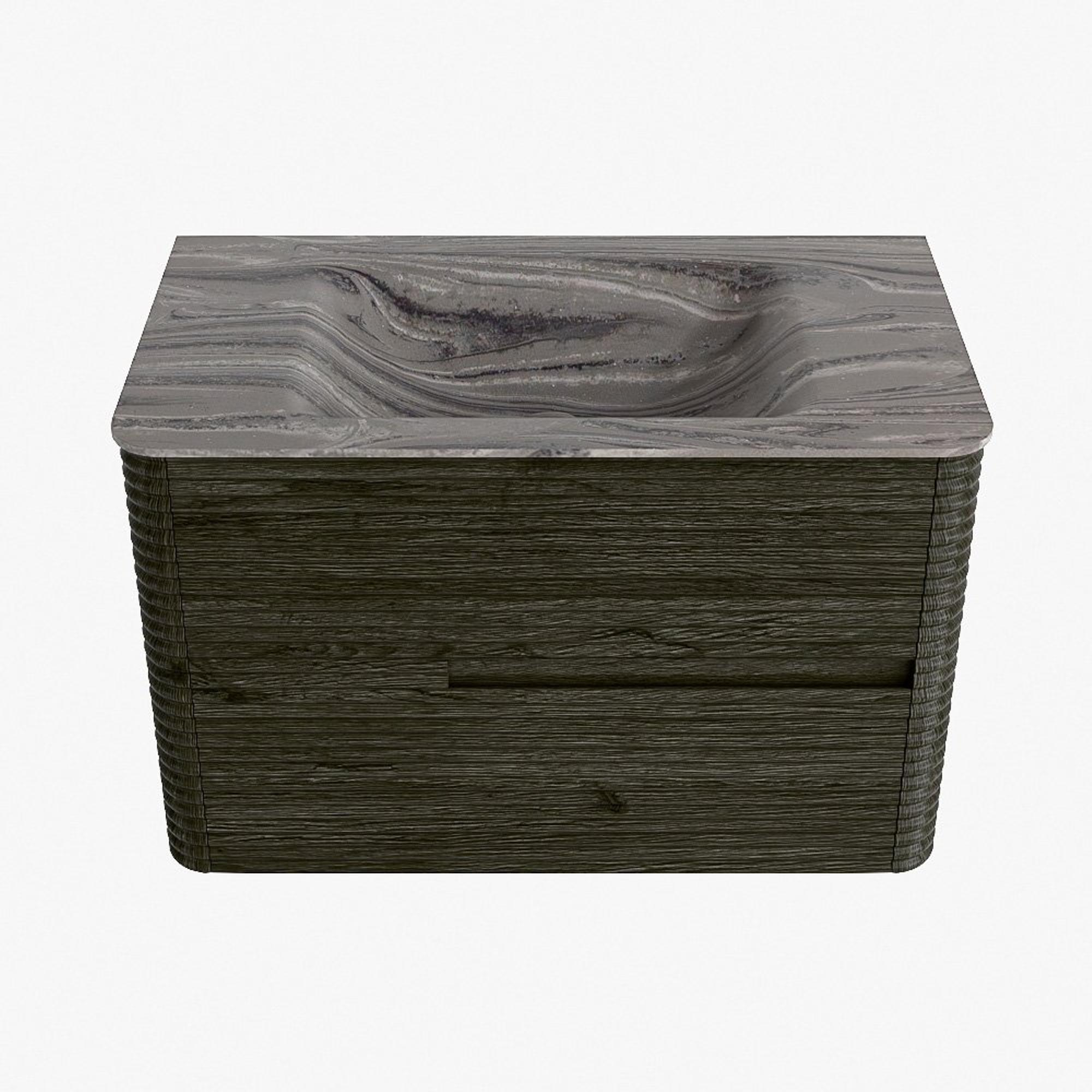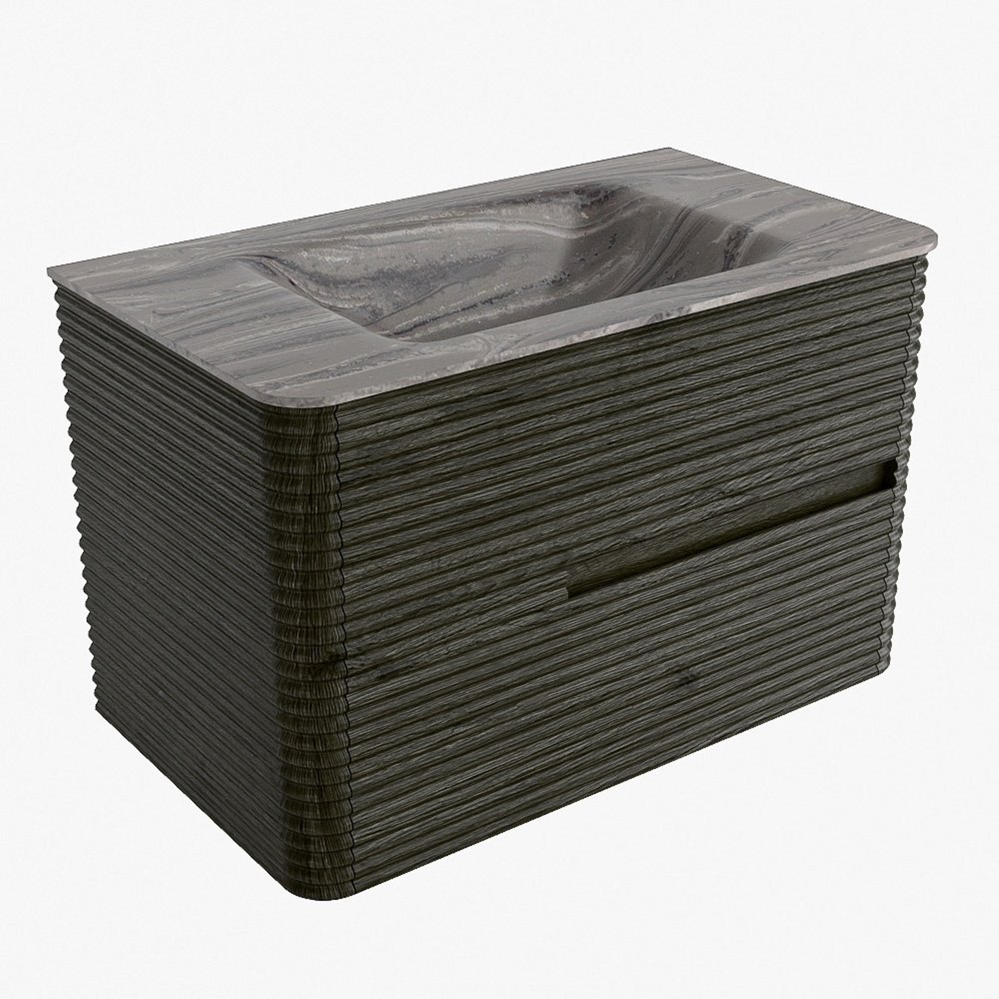 Mondiaz CIRO-DLUX Badkamermeubelset - 80x45x50cm - Solid surface wastafel Sombra - 1 wasbak Midden - zonder kraangaten - 2 lades - Shadow