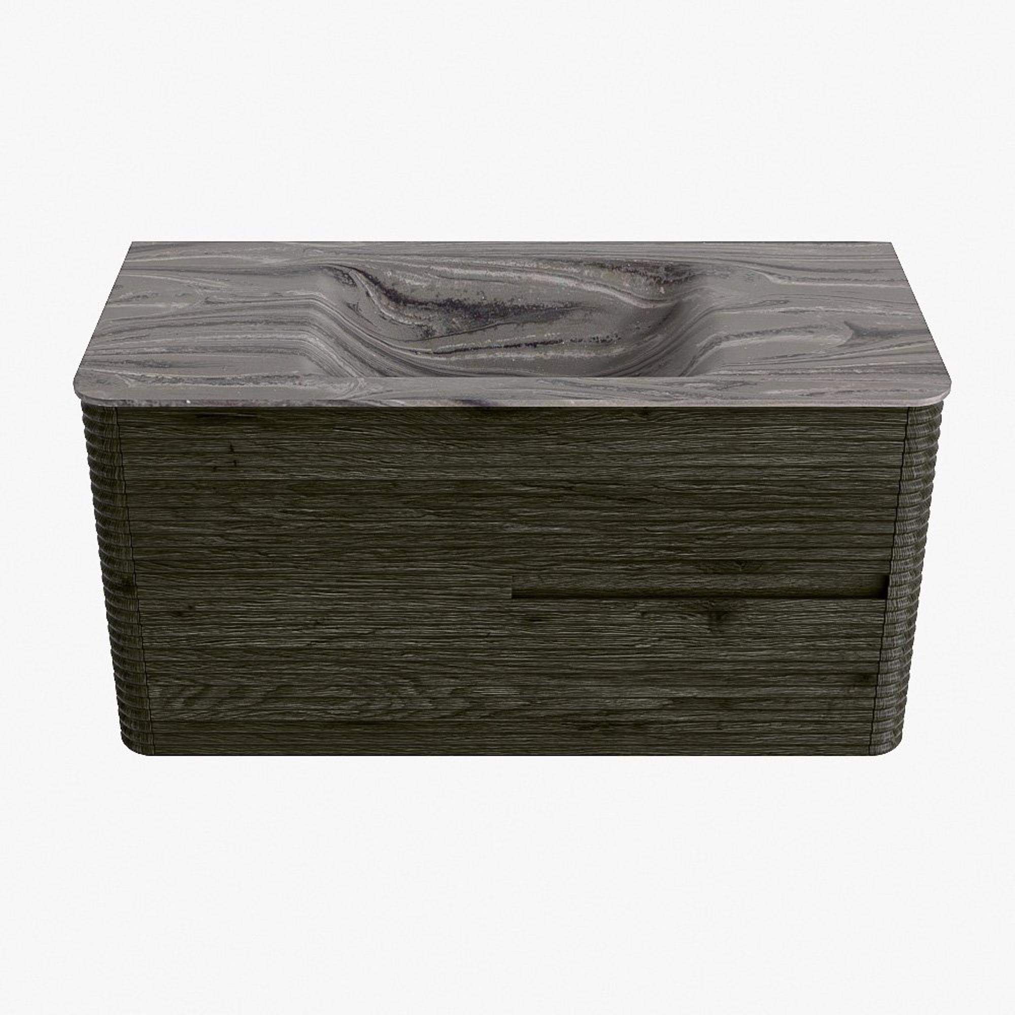 Mondiaz CIRO-DLUX Badkamermeubelset - 100x45x50cm - Solid surface wastafel Sombra - 1 wasbak Midden - 1 kraangat - 2 lades - Shadow