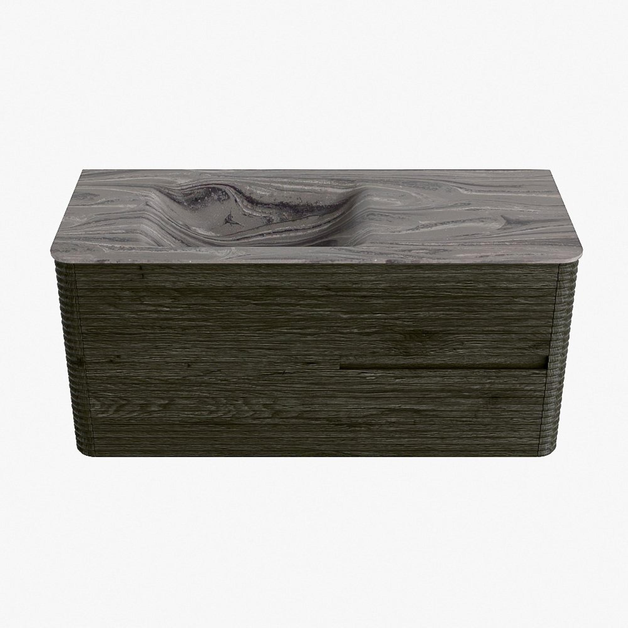 Mondiaz CIRO-DLUX Badkamermeubelset - 110x45x50cm - Solid surface wastafel Sombra - 1 wasbak Links - zonder kraangaten - 2 lades - Shadow
