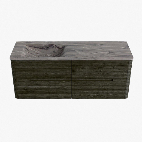 Mondiaz CIRO-DLUX Badkamermeubelset - 130x45x50cm - Solid surface wastafel Sombra - 1 wasbak Links - 1 kraangat - 4 lades - Shadow