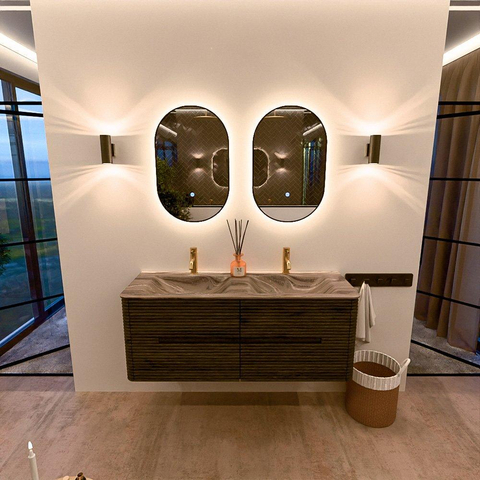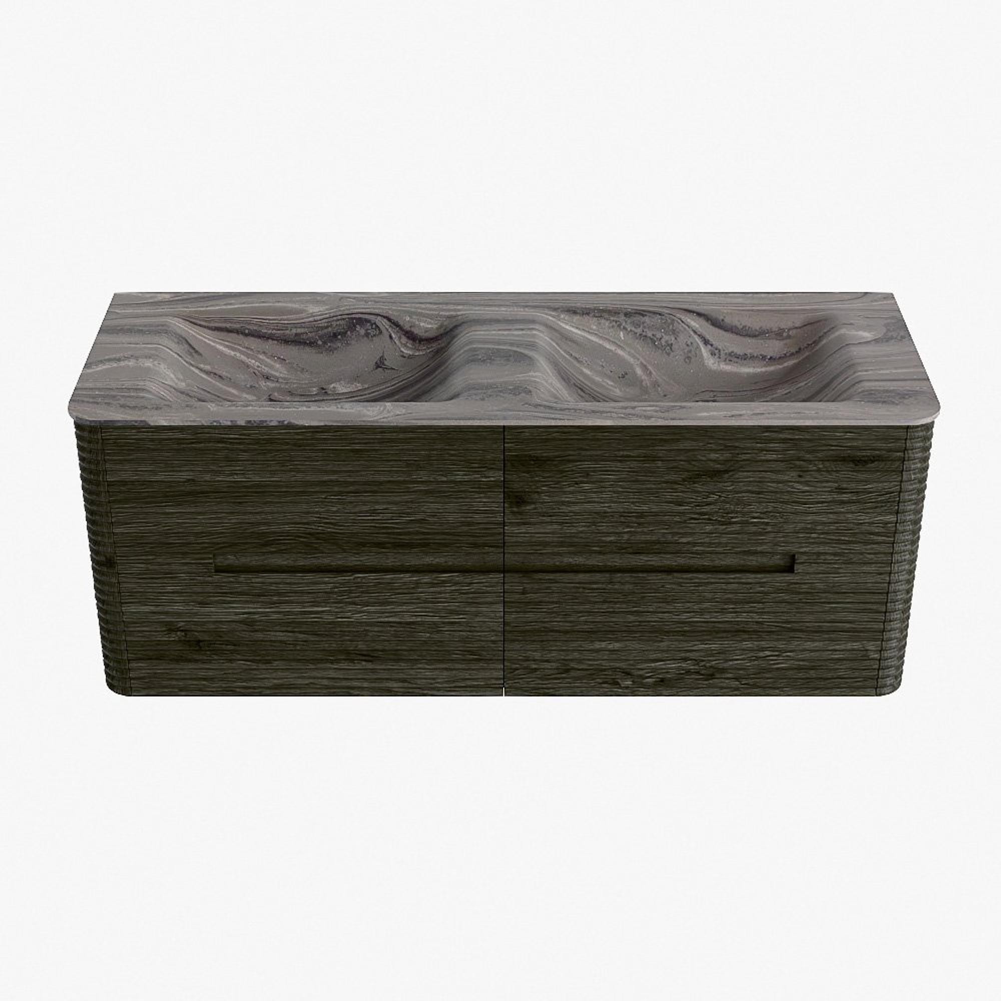 Mondiaz CIRO-DLUX Badkamermeubelset - 130x45x50cm - Solid surface wastafel Sombra - 2 wasbak Dubbel - 2 kraangaten - 4 lades - Shadow