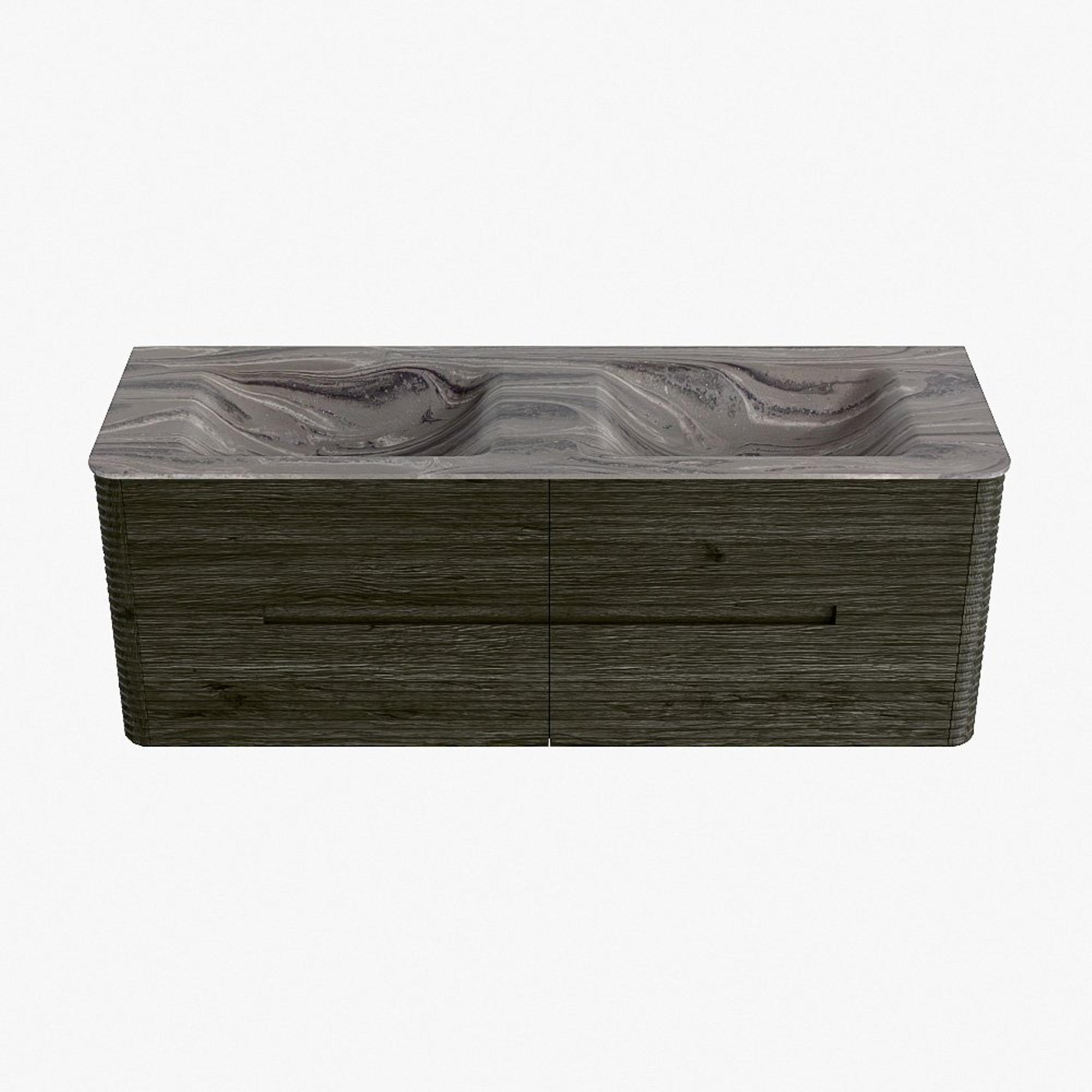 Mondiaz CIRO-DLUX Badkamermeubelset - 140x45x50cm - Solid surface wastafel Sombra - 2 wasbak Dubbel - 2 kraangaten - 4 lades - Shadow
