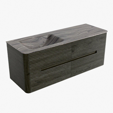 Mondiaz CIRO-DLUX Badkamermeubelset - 130x45x50cm - Solid surface wastafel Sombra - 1 wasbak Links - zonder kraangaten - 4 lades - Shadow