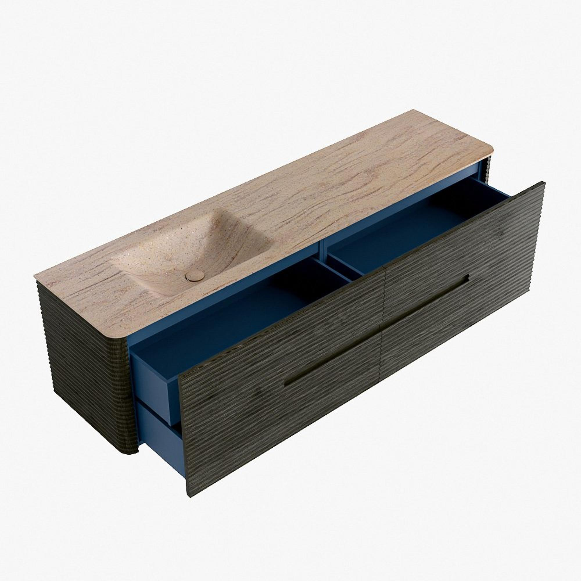 Mondiaz CIRO-DLUX Badkamermeubelset - 180x45x50cm - Solid surface wastafel Saba - 1 wasbak Links - 1 kraangat - 4 lades - Shadow