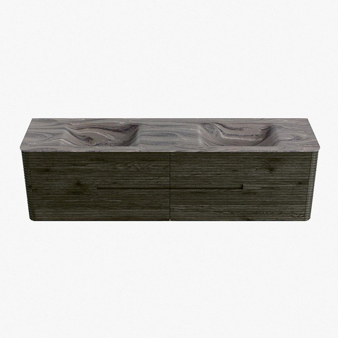Mondiaz CIRO-DLUX Badkamermeubelset - 180x45x50cm - Solid surface wastafel Sombra - 2 wasbak Dubbel - 2 kraangaten - 4 lades - Shadow