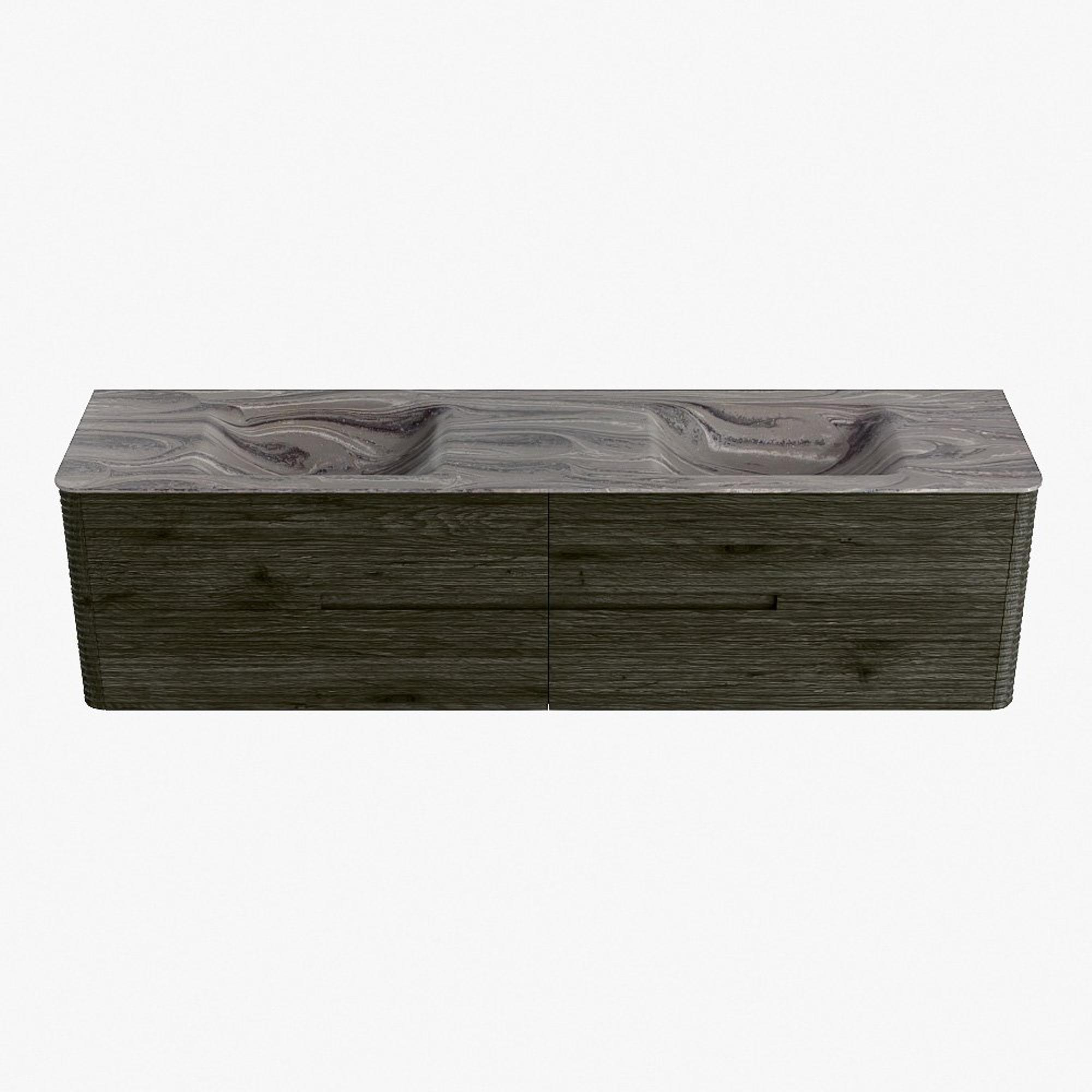 Mondiaz CIRO-DLUX Badkamermeubelset - 190x45x50cm - Solid surface wastafel Sombra - 2 wasbak Dubbel - 2 kraangaten - 4 lades - Shadow