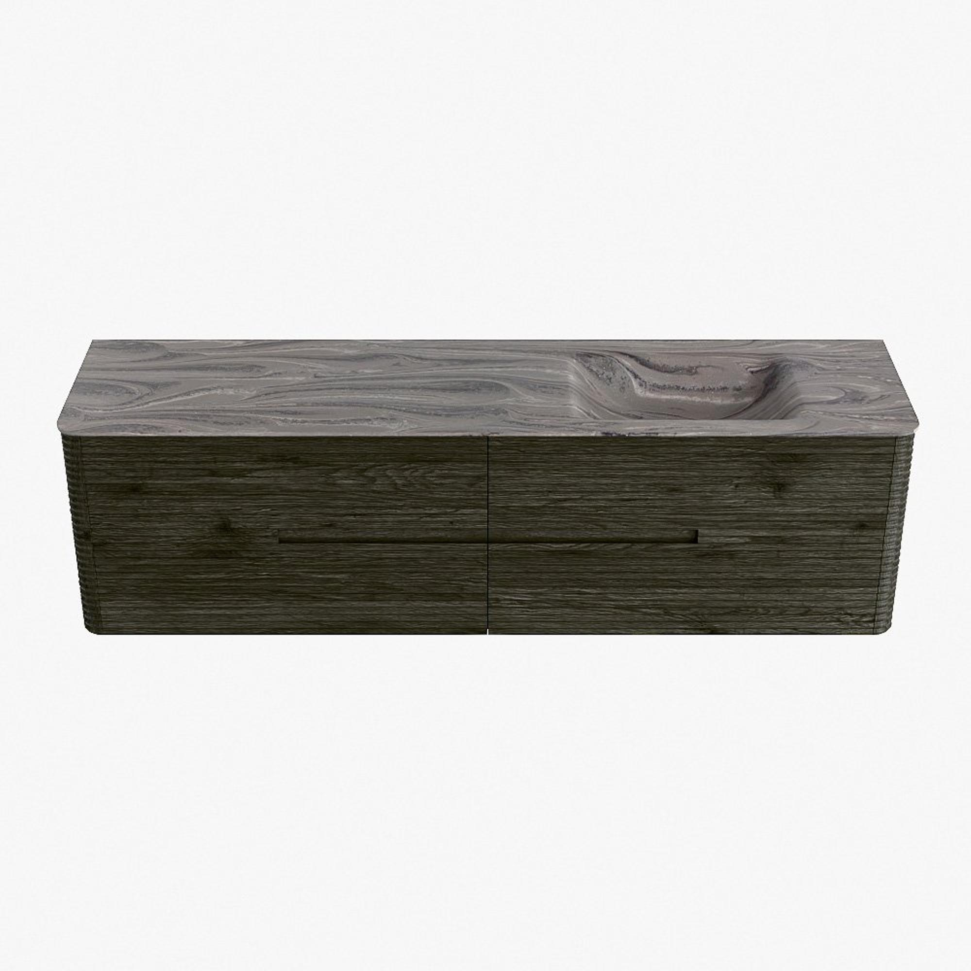 Mondiaz CIRO-DLUX Badkamermeubelset - 180x45x50cm - Solid surface wastafel Sombra - 1 wasbak Rechts - 1 kraangat - 4 lades - Shadow