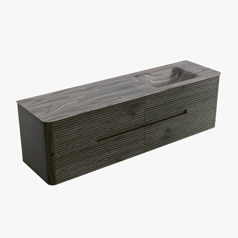 Mondiaz CIRO-DLUX Badkamermeubelset - 170x45x50cm - Solid surface wastafel Sombra - 1 wasbak Rechts - zonder kraangaten - 4 lades - Shadow
