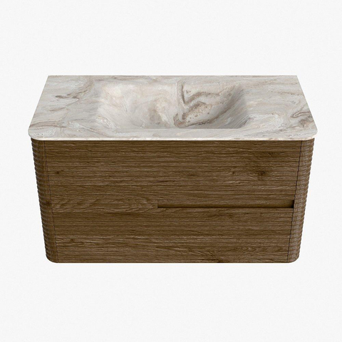 Mondiaz CIRO-DLUX Badkamermeubelset - 90x45x50cm - Solid surface wastafel Frappe - 1 wasbak Midden - 1 kraangat - 2 lades - Dusk