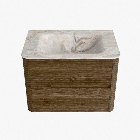 Mondiaz CIRO-DLUX Badkamermeubelset - 70x45x50cm - Solid surface wastafel Frappe - 1 wasbak Midden - 1 kraangat - 2 lades - Dusk