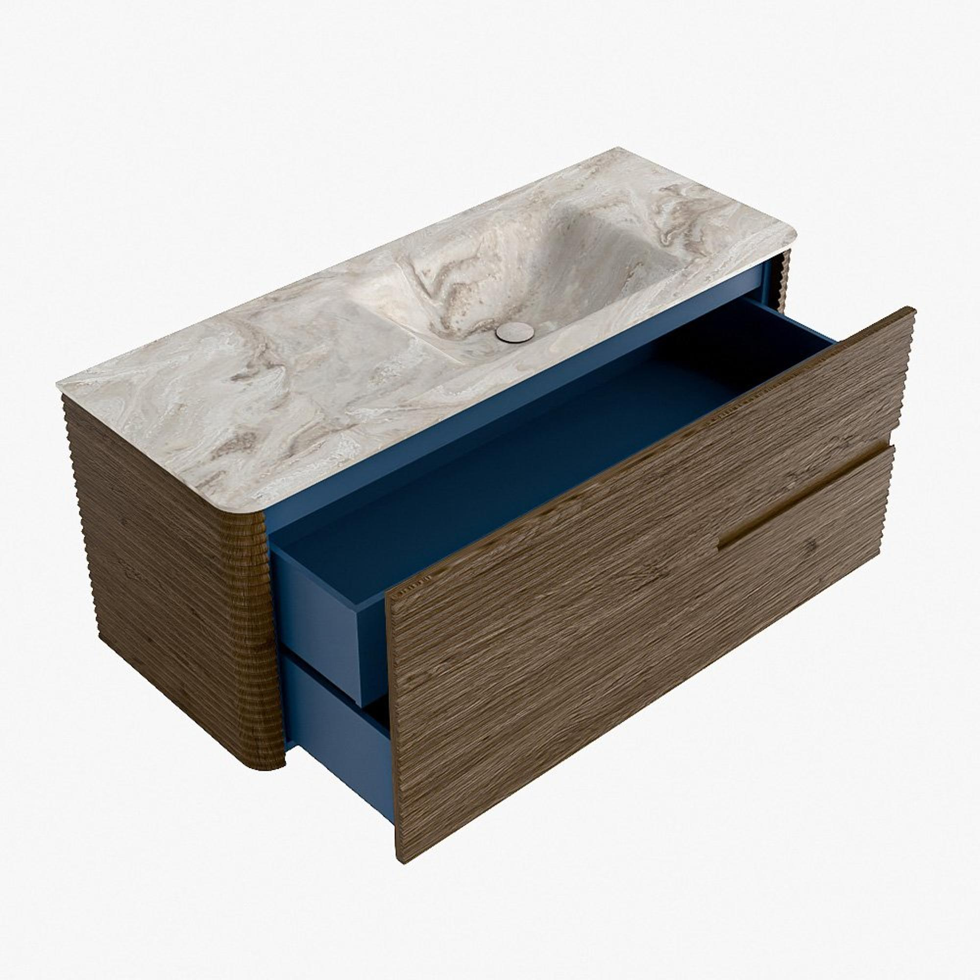 Functioneel gemak is een essentieel onderdeel van de CIRO-serie. Het meubel beschikt over een royale lade met extra binnen lade, ideaal voor het overzichtelijk opbergen van alle dagelijkse badkamerartikelen. Dankzij de geïntegreerde greep en het soft close-mechanisme blijft het front rustig, strak en elegant.