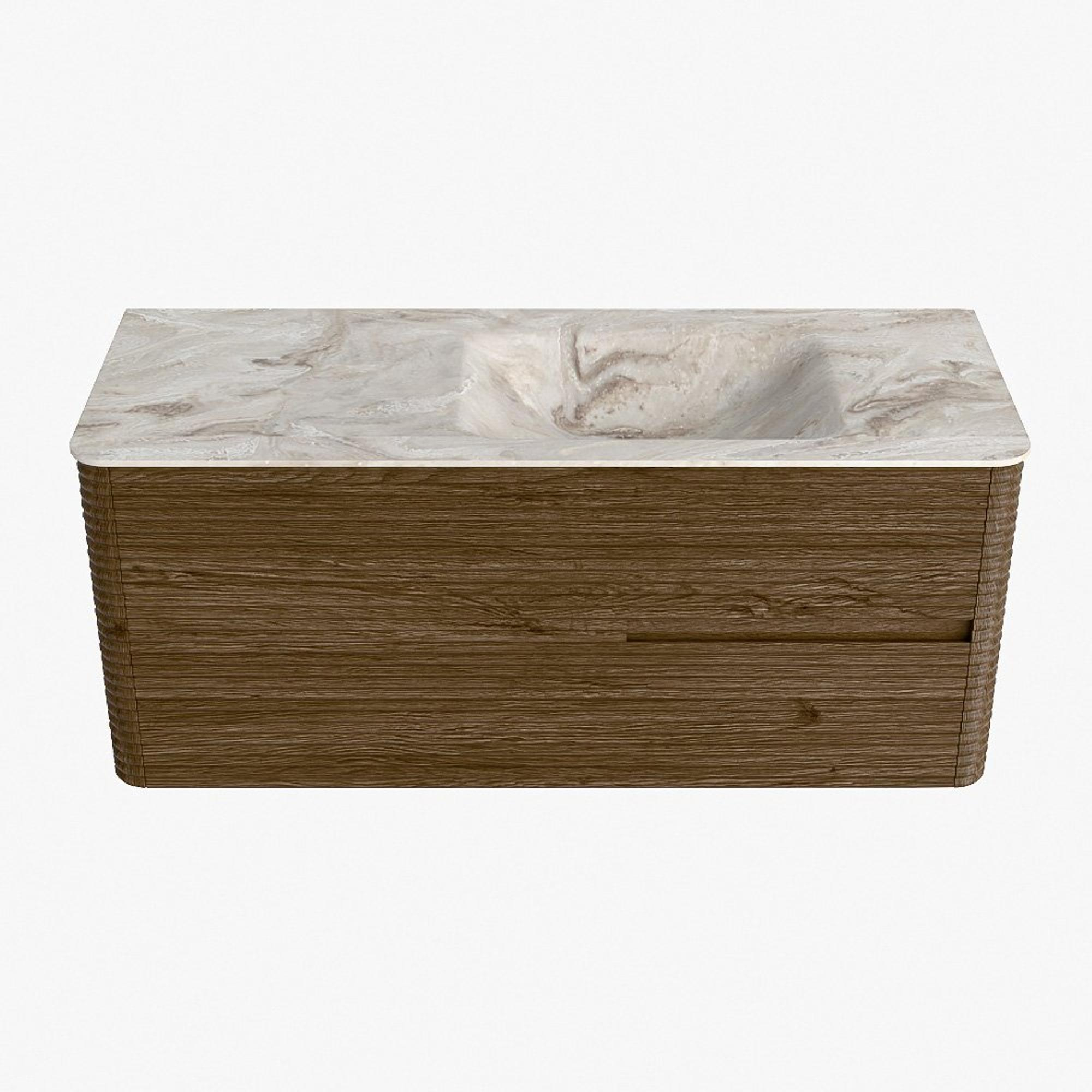 Mondiaz CIRO-DLUX Badkamermeubelset - 120x45x50cm - Solid surface wastafel Frappe - 1 wasbak Rechts - 1 kraangat - 2 lades - Dusk