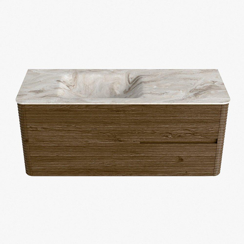 Mondiaz CIRO-DLUX Badkamermeubelset - 120x45x50cm - Solid surface wastafel Frappe - 1 wasbak Midden - 1 kraangat - 2 lades - Dusk