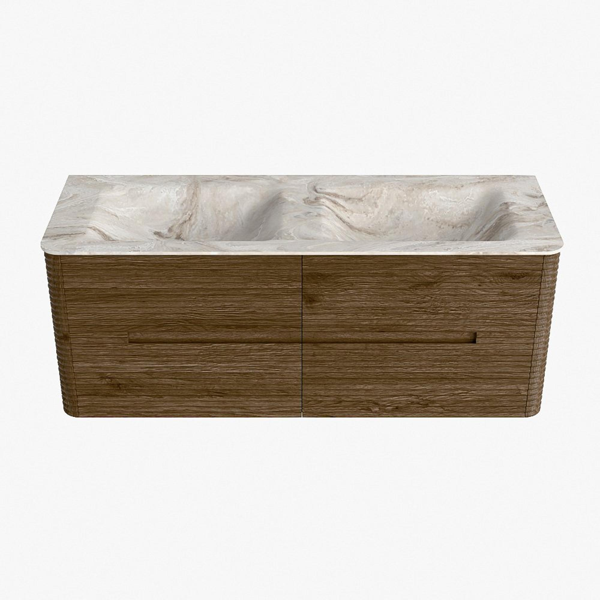 Mondiaz CIRO-DLUX Badkamermeubelset - 130x45x50cm - Solid surface wastafel Frappe - 2 wasbak Dubbel - zonder kraangaten - 4 lades - Dusk