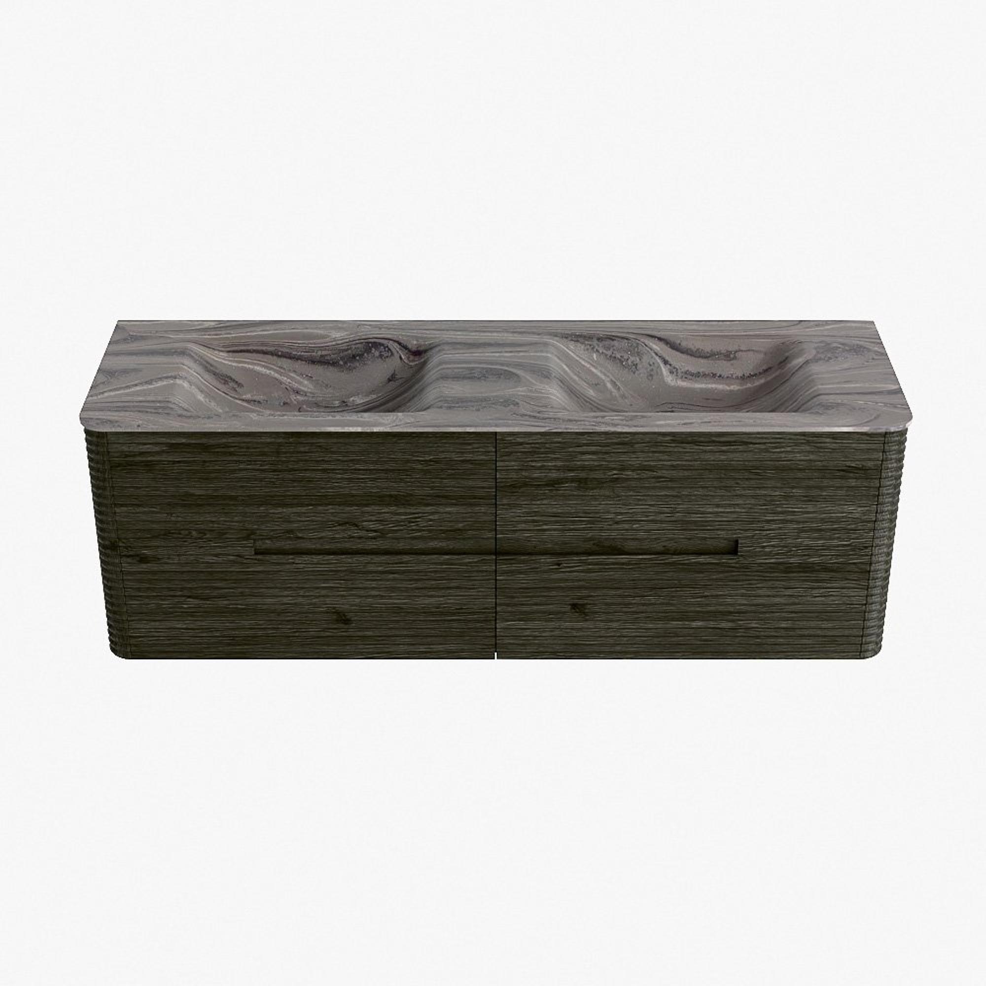 Mondiaz CIRO-DLUX Badkamermeubelset - 150x45x50cm - Solid surface wastafel Sombra - 2 wasbak Dubbel - 2 kraangaten - 4 lades - Shadow