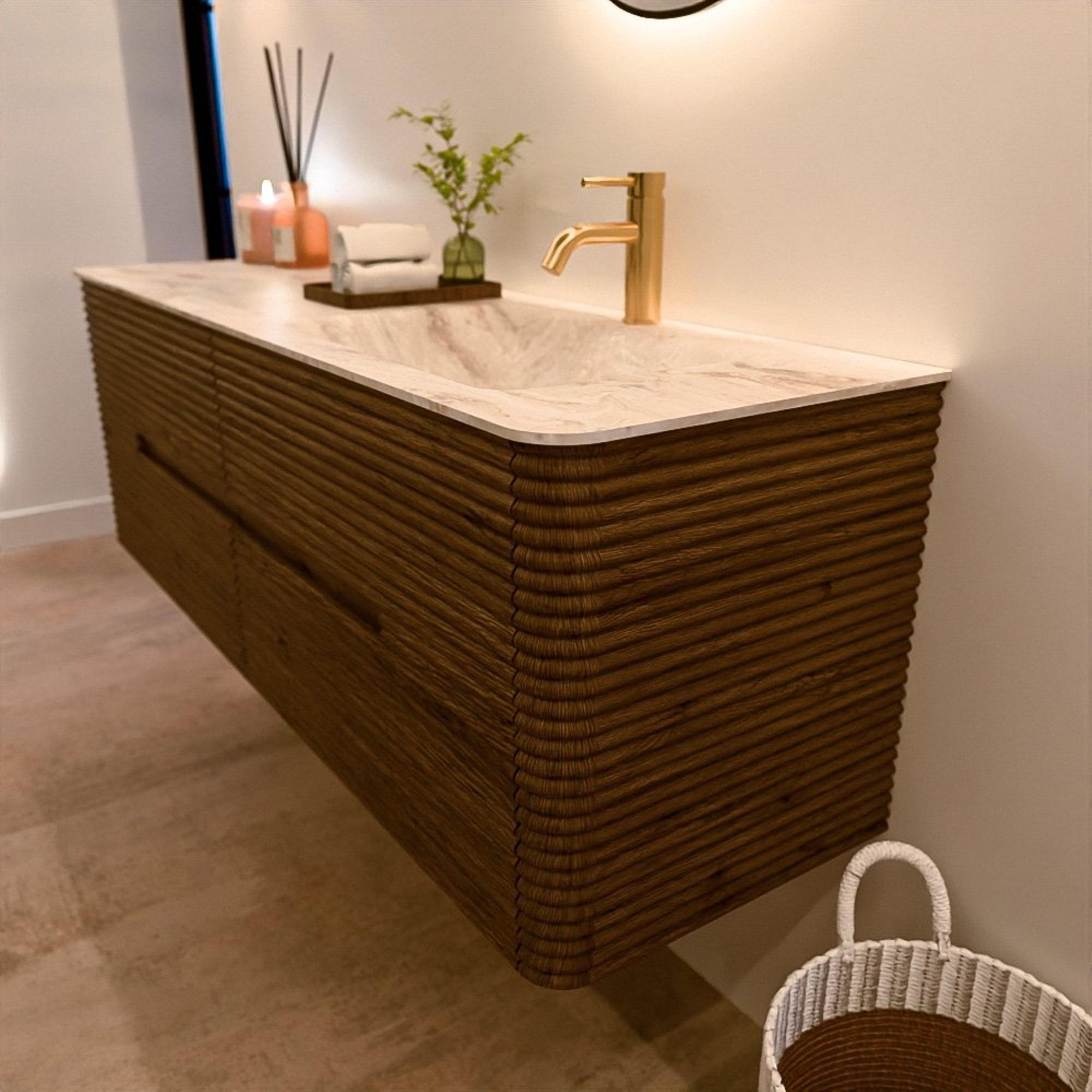 Het CIRO-DLUX badkamermeubel is ontwikkeld voor wie kiest voor modern design, natuurlijke materialen en hoogwaardige functionaliteit. Met maatvoeringen van 70 cm tot 190 cm past de CIRO-serie moeiteloos in zowel compacte badkamers als royale designruimtes. Elk meubel is een uitgebalanceerde combinatie van esthetiek, ambacht en duurzame kwaliteit.