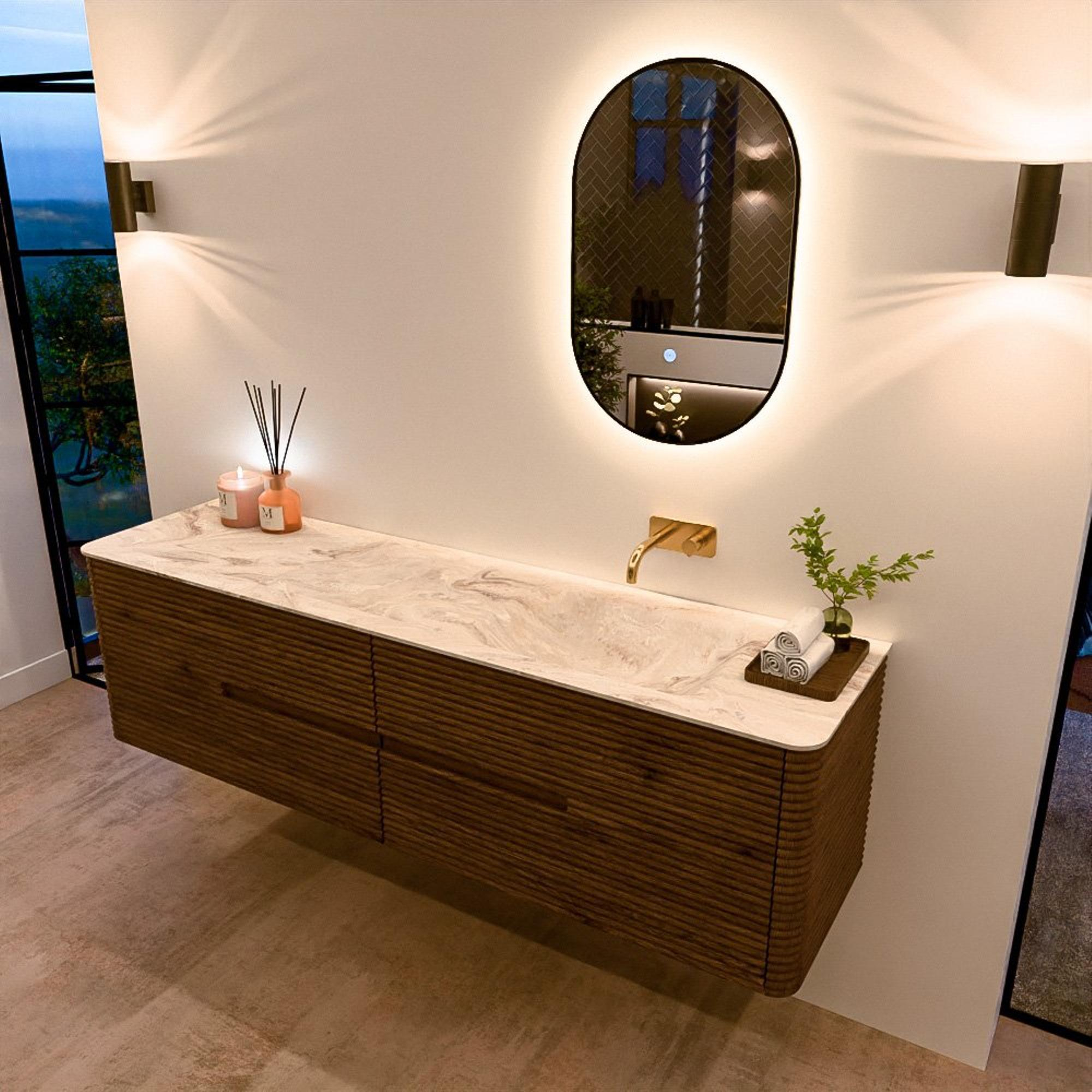 Het CIRO-DLUX badkamermeubel is ontwikkeld voor wie kiest voor modern design, natuurlijke materialen en hoogwaardige functionaliteit. Met maatvoeringen van 70 cm tot 190 cm past de CIRO-serie moeiteloos in zowel compacte badkamers als royale designruimtes. Elk meubel is een uitgebalanceerde combinatie van esthetiek, ambacht en duurzame kwaliteit.