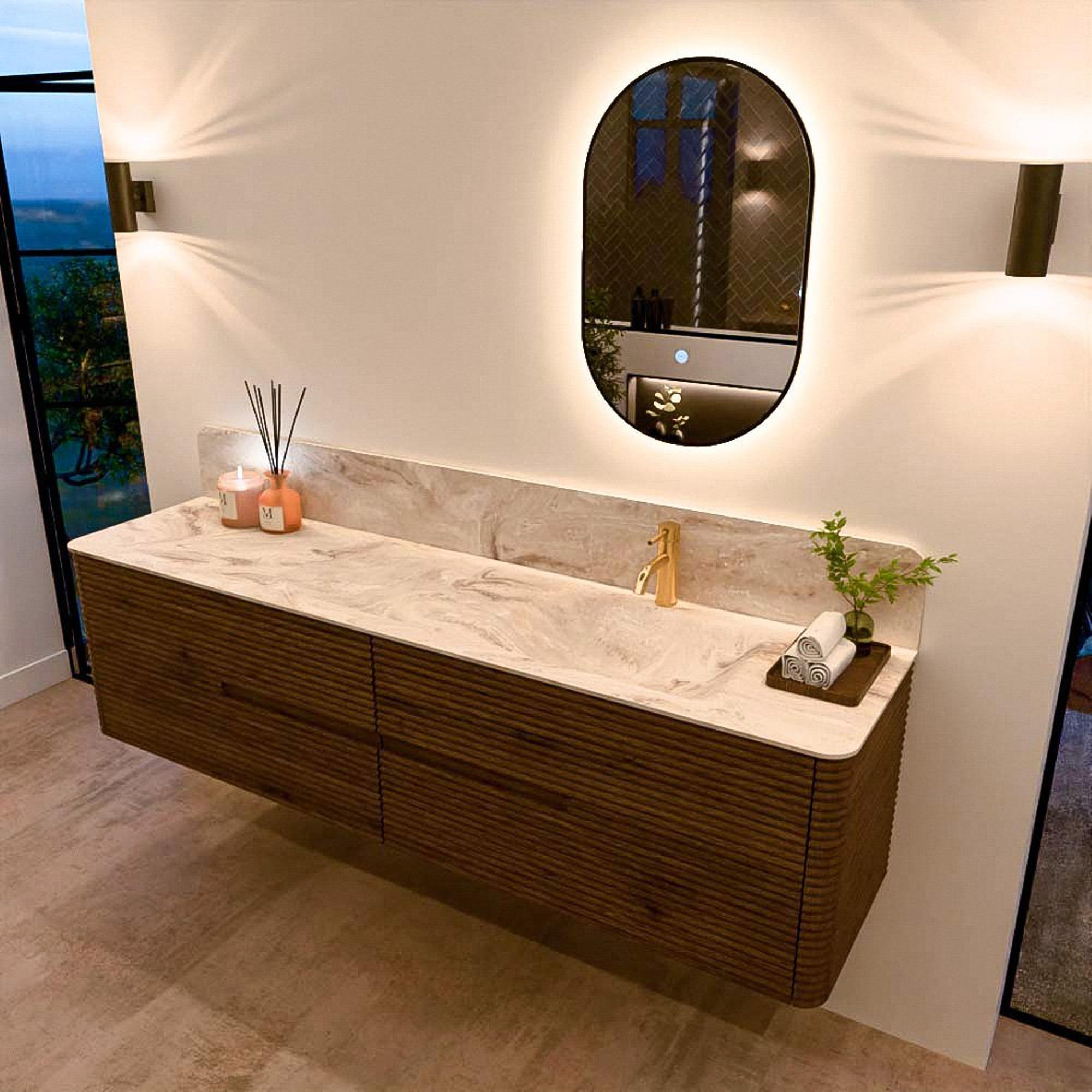 Het CIRO-DLUX badkamermeubel is ontwikkeld voor wie kiest voor modern design, natuurlijke materialen en hoogwaardige functionaliteit. Met maatvoeringen van 70 cm tot 190 cm past de CIRO-serie moeiteloos in zowel compacte badkamers als royale designruimtes. Elk meubel is een uitgebalanceerde combinatie van esthetiek, ambacht en duurzame kwaliteit.