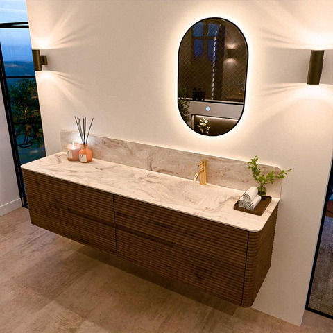 De wastafels van de CIRO-lijn worden vervaardigd uit hoogwaardig Solid Surface, een materiaal dat bekendstaat om zijn strakke uitstraling, hygiënische eigenschappen en uitstekende duurzaamheid. De wastafels zijn beschikbaar in 11 marmer- en travertin tinten, waarmee je het luxueuze karakter van natuursteen combineert met de voordelen van Solid Surface. De organische vorm van de kom versterkt het serene, sculpturale karakter van het ontwerp.