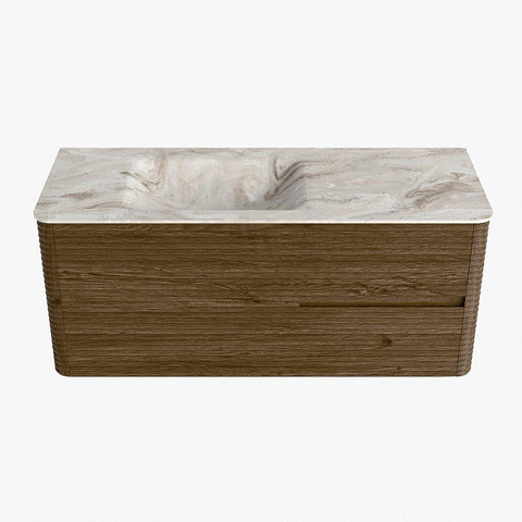 Mondiaz CIRO-DLUX Badkamermeubelset - 120x45x50cm - Solid surface wastafel Frappe - 1 wasbak Links - 1 kraangat - 2 lades - Dusk