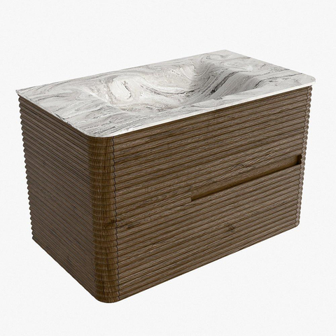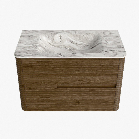 Mondiaz CIRO-DLUX Badkamermeubelset - 80x45x50cm - Solid surface wastafel Glace - 1 wasbak Midden - 1 kraangat - 2 lades - Dusk